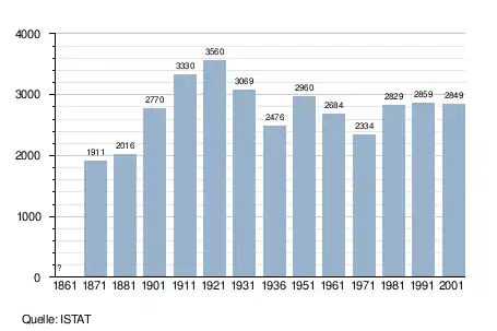 - ↑ Bilancio demografico e popolazione residente per sesso al 31 dicembre 2024. ISTAT. (Bevölkerungsstatistiken des Istituto Nazionale di Statistica, Stand 31. Dezember 2024).