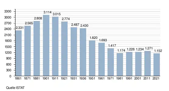 - ↑ Bilancio demografico e popolazione residente per sesso al 31 dicembre 2024. ISTAT. (Bevölkerungsstatistiken des Istituto Nazionale di Statistica, Stand 31. Dezember 2024).