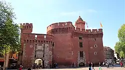 Die Festung Castillet mit dem nördlichen Stadttor, der „Porte Notre-Dame“, ist der verbleibende Teil der früheren Stadtbefestigung um Perpignan.[1] Ab 1904 wurde die Stadtmauer weitgehend abgetragen, um für die bauliche Erweiterung der Stadt Raum zu schaffen. Das Castillet wurde um 1368 erbaut. Der dreistöckige Ziegelbau mit seinen Zinnen im maurischen Stil hatte die Funktion, die Nordseite der Stadtbefestigung zu sichern. In den Jahren 1481–1485 wurde unmittelbar angrenzend das nördliche Stadttor, die Porte Notre-Dame errichtet. Vom 17. bis zum 19. Jahrhundert diente das Castillet als Gefängnis.