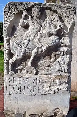 - ↑ CIL 13, 7706: Herculi / Saxano / vex<i=E>llatio / cohortis / I c(ivium) R(omanorum) / v(otum) s(olvit) l(ibens) m(erito)