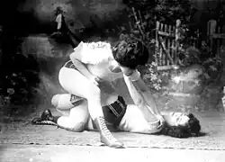 Catfight ist auch der Sammelbegriff für eine fetischartige Neigung, die ihre erotische Anziehungskraft im sowohl sportlichen als auch gespielten Kräftevergleich zwischen Frauen hat. Diese Neigung ist primär voyeuristisch ausgeprägt und betrifft zumeist Ringen, Armdrücken und Boxen.[10] Homo- und bisexuelle Frauen nutzen den Ringkampf bisweilen auch als Mittel des Körperkontaktes, da er sich geradezu als Möglichkeit einer lustvollen Begegnung mit anderen Frauen anbietet. Für diesen Aspekt spricht, dass sehr intime Ringkämpfe in orgastischen Verschlingungen und offener Tribadie münden können. In manchen Fällen sind die sexuelle Erregung sowie der Höhepunkt erklärtes Ziel eines Ringkampfes unter Frauen. Als Regel eines solchen „Sexkampfes“ (engl. Sexfight) gilt meistens: Wer zuerst zum Orgasmus kommt, hat verloren. Nichtsdestoweniger sind bei einer klitoridal stimulierten Frau multiple Orgasmen möglich. Schon bei der nächsten Gegnerin, sogar noch im selben Kampf, kann abermals ein Orgasmus erzielt werden. Sogenannte Pussy-, Sex- oder Tribfights bilden unter kommerziell hergestellten Videos eigene Kategorien. Tribadische Szenen und erotische Kämpfe sind daher nicht immer eindeutig zu unterscheiden.[11]