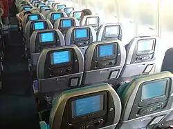 Das Bordunterhaltungsprogramm wird über einen persönlichen 9-Zoll-Monitor angeboten. Die Passagiere erhalten der Flugzeit entsprechend (mehrere) Menüs.