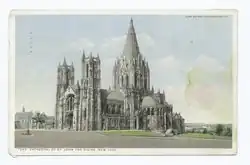 Bischof Horatio Potter sprach 1872 das Thema der Errichtung einer Kathedrale an, worauf diese einstimmig beschlossen wurde und 1873 die Gründungsurkunde für die Kathedrale zu St. John the Divine ausgestellt wurde. 1888 wurde das 5,25 Hektar große Areal für die Kathedrale ausgewählt, auf dem am 27. Dezember 1892 am Tag des Heiligen Johannes der Grundstein gelegt wurde. Der Entwurf von George Lewis Heins und John LaFarge sah einen byzantinisch-romanischen Stil vor, der jedoch von Ralph Cram 1911 im Stil der Neugotik abgeändert wurde, nachdem die große Kuppel 1909 von Rafael Guastavino fertiggestellt worden war. Mit 11.240 m² Grundfläche, einem Volumen von 476.350 m³ und einer Länge von 183,2 m ist sie die größte anglikanische Kirche und nach dem Petersdom, der Basilika Notre-Dame de la Paix und der Kathedrale von Sevilla die viertgrößte christliche Kirche der Welt[1].
