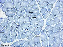 In der Muskelbiopsie sind insbesondere in der enzymhistochemischen Färbung für NADH Störungen des intermyofibrillären oxidativen Netzwerks mit zentralen, hellen Flecken (cores) charakteristisch. Die Erkrankung wird in der Mehrzahl der Fälle autosomal-dominant mit wechselnder Penetranz vererbt. Zugrunde liegen überwiegend Mutationen des für einen Ryanodin-Rezeptor kodierenden Gens RYR1.[3]