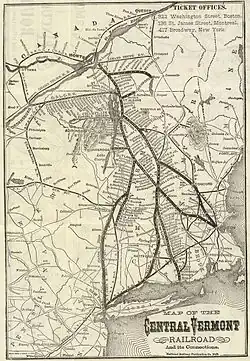 - ↑ Official Guide of the Railways and Steam Navigation Lines of the United States, Porto Rico, Canada, Mexico and Cuba. Ausgabe November 1913. Central Vermont Rwy., Tables 64/65. Seiten 103/104.