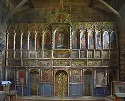 Die Kirche gehört zum galizischen Typus der Holzkirchen. Sie besteht aus gehauenen Baumstämmen, die horizontal verlegt sind. Das gesamte Bauwerk und die steilen Dächer sind mit Holzschindeln verkleidet oder bedeckt. Die Kuppel ist viereckig angelegt.