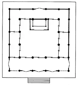 Die Haupthalle (Hondō) aus der Kamakura-Zeit hat einen fast quadratischen Grundriss von 5 × 5 Ken, hier 13 × 15,35 m. Sie besitzt ein Fußwalmdach. Daneben steht eine Schatzpagode (Tahōtō), sie stammt aus dem Ende der Kamakura-Zeit oder aus dem Beginn der Muromachi-Zeit. Sie hat eine Seitenlänge von 3 Ken und ist in reinem „japanischen Stil“ ausgeführt. – Alle drei Gebäude gehören Nationalschätzen Japans.
