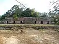 Die Fassade entspricht dem klassischen Puuc-Säulchenstil. Die untere Wandfläche oberhalb eines einfachen Sockels ist glatt und undekoriert. Die Eingänge sind teilweise mit zwei Säulen und aufliegenden Kämpferplatten ausgeführt. Das mittlere Gesims besteht aus drei Bändern, mit einem schlangenförmigen Motiv in der Mitte. Die obere Wandfläche zeigt Säulchen mit zwei Bindungen und in Abständen die Darstellung von Hauseingängen unter einem glatten Dach mit Verzierungen im oberen Teil. Gemeint sind hier möglicherweise – abweichend von dem üblichen Muster – Bauten mit glattem Steindach. Das obere Gesims ist ähnlich dem mittleren gestaltet, allerdings stehen aus dem mittleren Band hier zahlreiche kugelförmige Steine (Phalli?) heraus.