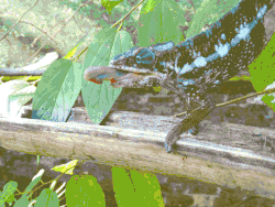 Auch für die Wasseraufnahme wird die Zunge benutzt. Einige Arten lecken das Wasser von Blättern, andere benutzen sie als Wasserleitung, indem sie die Zunge an Äste oder Blätter legen, über die Wasser fließt. So läuft es an der Zunge herunter direkt ins Maul.