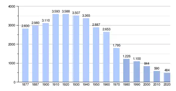 Durch Fortzug in die umliegenden Städte ist die Bevölkerung seit den 1950er Jahren stetig gesunken.