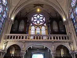 Das Tympanon mit dem Motiv „Jesus und die Kinder“ stammt von Girardet, die im Fassadentürmchen platzierte Muttergottes mit Jesuskind von Joseph-Hugues Fabisch. Antoine Sublet (1821–1897) und Gabriel Tyr (1817–1868) haben Gemälde beigetragen. Die 12 Kirchenfenster wurden nach Zeichnungen von Louis Charles Auguste Steinheil und Nicolas Coffetier (1821–1884) angefertigt. Die Merklin-Orgel ist von 1864.