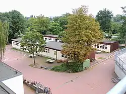 Dem nördlichen Haupthaus hangabwärts vorgelagert sind drei parallele Riegel, die im Süden durch einen Quergang mit dem zentralen Treppenhaus verbunden sind. Jeder Riegel enthält vier Klassenräume; der Verbindungsgang ist mit Oberlichten beleuchtet. Die östliche Wand der Klassenzimmer (hangabwärts) besteht aus einer Fensterfront, die vom Fußboden bis zur Decke reicht und den Raum hell erleuchtet; eine Tür erlaubt den unmittelbaren Zugang zur Grünfläche zwischen den Riegeln. Die Sonneneinstrahlung kann im Sommer allerdings zu starker Erwärmung einiger Räume führen. Neu war damals die Auflösung der klassischen Schulbänke, die durch locker gruppierte Stühle und Tische ersetzt wurden,[1] die nach den jeweiligen Zwecken des Unterrichts entsprechend in Reihen oder Gruppen zusammengestellt werden können.[2]