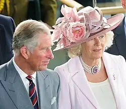 Wegen der Beisetzung von Papst Johannes Paul II. wurde die Trauung um einen Tag verschoben. Am 9. April 2005 fand im Anschluss an die Ziviltrauung von Charles und Camilla in der Windsor Guildhall[14] in der St. George’s Chapel in Windsor Castle eine kirchliche Segensfeier statt.[15] Millionen von Fernsehzuschauern verfolgten die Feierlichkeit.[15] Als Ehefrau des Fürsten von Wales war Camilla nunmehr die Fürstin von Wales; sie führte diesen Titel jedoch nicht, sondern wurde (außerhalb von Schottland) als Duchess of Cornwall bezeichnet. Charles ließ zunächst mitteilen, dass sie sich nach seiner Thronbesteigung nicht wie üblich Queen Consort, sondern Princess Consort (Prinzessingemahlin) nennen würde – in Anlehnung an Prinz Albert, den Mann von Königin Victoria; später hatte er dies aber wieder in Frage gestellt. Anfang Februar 2022 vermittelte Elisabeth II. den Wunsch, Camilla solle nach ihrem Tod Queen Consort werden.[16]