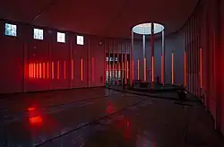 Im Anschluss an „sheer, reflected“ entstand mit dem dort eingesetzten Material die permanente Arbeit „skalen“ am Kirchturm der Allerheiligenkirche in Frankfurt. In Mustern und scheinbar zufälligen Schaltungen beleuchten rote LEDs das Innere und die teilweise offene Konstruktion des Glockenturms. Aus der Einladung: „Indem sich Kunst dieser Marker (der Kirchtürme) annimmt, vollzieht sich, was auch an den kunstvoll mit Licht in Szene gesetzten Wolkenkratzern abzusehen ist: Plötzlich affiziert mit einer scheinbar abseitigen Bedeutung, verstärkt dieses Andere das Ursprüngliche, bestätigt es und stellt es gleichzeitig in Frage. Für die Betrachtenden öffnet sich so ein Raum für Interpretation und Selbstverortung.“