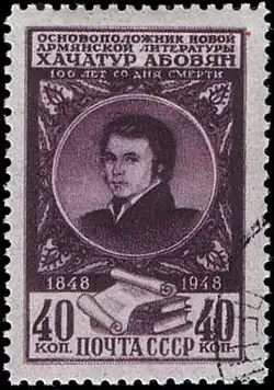 Die sowjetische Post gab anlässlich des 100. Todestages von Abowjan 1948 eine Sondermarke heraus.