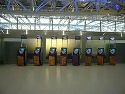 Um Kosten für die Fluglinien und Zeit für die Passagiere zu sparen, werden immer häufiger Check-in-Automaten auf Flughäfen eingesetzt. Dabei handelt es sich um Automaten, die der Passagier selbst bedienen kann: Sitzplatzvergabe und Angaben über Gepäckstücke werden per Touchscreen-Funktionen erledigt. Voraussetzung sind aber meist noch Vielfliegerkarten oder elektronische Tickets.