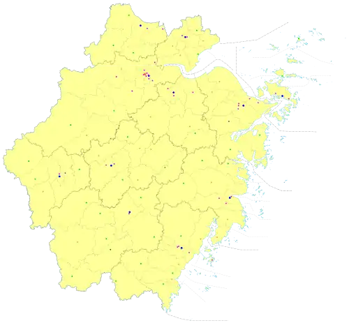 - ↑ a b c 浙江省第七次人口普查主要数据公报 – „Hauptdatenbulletin der siebten Volkszählung der Provinz Zhejiang“. Provinzregierung von Zhejiang, 14. Mai 2021, abgerufen am 27. Oktober 2024 (chinesisch (vereinfacht)).
