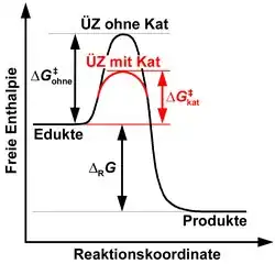 Ein Katalysator beschleunigt bzw. verlangsamt Hin- und Rückreaktion auf die gleiche Weise. Er verändert damit nicht die Gleichgewichtskonzentrationen der Edukte und Produkte, bewirkt aber, dass sich der Gleichgewichtszustand schneller einstellt. Die Funktion eines Katalysators beruht auf der Eröffnung eines neuen Reaktionsweges, der über andere Elementarreaktionen läuft als die unkatalysierte Reaktion. An diesen Elementarreaktionen ist der Katalysator zwar selbst beteiligt, jedoch verlässt er selbst den Vorgang (chemisch) unverändert. Den Einfluss eines Katalysators erkennt man bei der Betrachtung des Reaktionsprofils. Er setzt die Aktivierungsenergie herab.