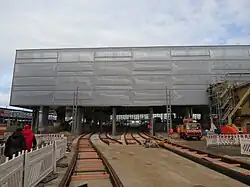 Vom 25. bis zum 31. Oktober 2011 wurde der Chemnitzer Hauptbahnhof teil- bzw. total gesperrt. In dieser Zeit wurden die zuvor neu errichteten Signalanlagen an das elektronische Stellwerk angeschlossen. Seitdem werden die Weichen und Signale der Strecke Dresden–Werdau von der Betriebszentrale Leipzig gesteuert. 12 km neue Gleise, 28 Weichen, 91 Signale und die dazugehörende Fahrleitungsanlage gingen in Betrieb.[40] Das Gleis 28 am Bahnsteig 5 erhielt in diesem Zusammenhang keine Fahrleitung mehr.