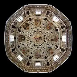 Der Innenraum besitzt die Form eines Oktogons. In den acht Wandnischen öffnen sich vier Seitenkapellen, drei Portale sowie der im Osten liegende Chor. Die architektonische Strenge des Raumes kann auch durch die reichhaltige Dekoration mit ihren Stuckarbeiten und Ölmalereien nicht verheimlicht werden.[17] Die Innendekorationen werden je nach Autor dem Manierismus oder dem Barock zugeordnet, während andere Autoren sich nicht festlegen.