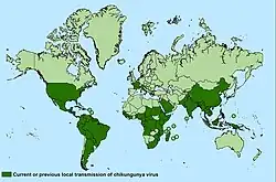 Anfang 2022 veröffentlichte CDC eine Liste mit 115 Staaten, aus denen das Chikungunyafieber Stand Oktober 2020 bereits festgestellt wurde, wobei Länder oder Gebiete, in denen nur importierte Fälle dokumentiert wurden, nicht erfasst werden.[7]