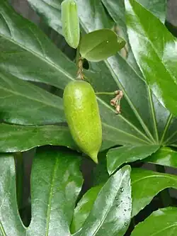 Es werden essbare, eiförmige, bis etwa 2,5–3 (bis 6 bei Kultivaren)[3] Zentimeter lange, vielsamige, grüne bis grün-gelbe, glatte, bespitzte, ledrige Beerenfrüchte mit weißlichem Fruchtfleisch gebildet. Die eiförmigen bis ellipsoiden, etwa 3–4 Millimeter großen Samen sind gelblich.