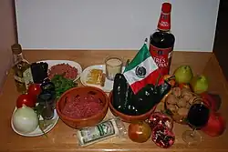 Chiles en Nogada sind ein traditionelles Gericht des Bundesstaates Puebla südlich von Mexiko-Stadt. Diana Kennedy berichtet, dass Chiles en Nogada angeblich erstmals 1821 bei einem Bankett zu Ehren von Agustín de Iturbide serviert wurden.[1] Nach der Unterzeichnung des Tratados de Córdoba war die Unabhängigkeit Mexikos gesichert und bei dem Bankett wurden ausschließlich Gerichte in den Nationalfarben Mexikos serviert.