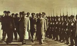 Nach dem Ende des Zweiten Weltkriegs sah sich die von der Kuomintang geführte Republik China unter sowjetischem Druck gezwungen, die Unabhängigkeit der Äußeren Mongolei formell anzuerkennen, doch diese Anerkennung wurde 1953 widerrufen. Im Jahr 1949 gewannen die Kommunisten den chinesischen Bürgerkrieg und erkannten die Unabhängigkeit der Mongolei an. Die Volksrepublik China nahm am 16. Oktober 1949 diplomatische Beziehungen zur Mongolei auf, und 1962 unterzeichneten beide Staaten einen Grenzvertrag.[5] Nach der chinesisch-sowjetischen Spaltung stellte sich die Mongolei auf die Seite der Sowjetunion an und bat um die Stationierung sowjetischer Streitkräfte, was in China zu Sicherheitsbedenken führte. Infolgedessen blieben die bilateralen Beziehungen bis 1984 angespannt, als eine hochrangige chinesische Delegation die Mongolei besuchte und beide Staaten begannen, ihre Grenzen zu vermessen und zu demarkieren.[6] Mit dem Ende des Kalten Krieges und dem Zerfall der Sowjetunion wurde die Volksrepublik China der wichtigste Wirtschaftspartner der Mongolei und löste damit die Sowjetunion ab. 1994 unterzeichnete der chinesische Premierminister Li Peng einen Vertrag über Freundschaft und Zusammenarbeit mit der Mongolei.[7] 2014 schlossen beide Länder eine strategische Partnerschaft und 2018 hielten beide gemeinsam mit Russland das Militärmanöver Wostok-2018 ab.[6]