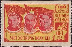 Die Republik China wurde 1949 durch die Volksrepublik China gestürzt und die Kommunisten unter Führung von Mao Zedong übernahmen die Macht in Festlandchina. Die Republik China unter Chiang Kai-shek zog sich auf die Insel Taiwan zurück. Der Indochinakrieg (ein Unabhängigkeitskrieg der Vietnamesen gegen die Franzosen) führte 1954 zur Teilung Vietnams in einen sozialistischen Norden (Demokratischen Republik Vietnam) und einen prowestlichen Süden (Staat Vietnam). Neben der Sowjetunion war das kommunistische China ein wichtiger strategischer Verbündeter Nordvietnams während des Indochinakriegs und des folgenden Vietnamkriegs (1955–1975). Die Chinesen unterstützten den kommunistischen Norden zwischen 1949 und 1975 mit Waffen, militärischer Ausbildung und lebenswichtigen Gütern, um das imperialistische französische Kolonialreich, das kapitalistische Südvietnam und dessen Verbündeten, die USA, zu besiegen. Zwischen 1964 und 1969 entsandte das kommunistische China Berichten zufolge mehr als 300.000 Soldaten, hauptsächlich in Flugabwehrdivisionen, in den Kampf nach Vietnam.[9] Die Nordvietnamesen misstrauten allerdings gleichzeitig dem chinesischen Einfluss und schon 1946 warnte Ho Chi Minh mit den Worten „Das letzte Mal, als die Chinesen kamen, blieben sie tausend Jahre. […], aber wenn die Chinesen jetzt bleiben, werden sie nie wieder gehen.“[10] Während der Indochinakonferenz in Genf 1954, die den Indochinakrieg beendete, drängte der chinesische Premierminister Zhou Enlai die Viet Minh-Delegation, die Teilung Vietnams zu akzeptieren, was diese als Verrat auffasste.[11]