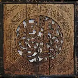 An Stelle der floralen oder figürlichen Darstellungen finden sich auch Schriftzeichen in der Mitte der chinesischen Holzgitter, in erster Linie auf gute Wünsche für Gesundheit und langes Leben zielend.