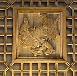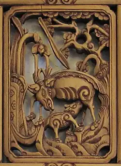 Oft beziehen sich die in Holz geschnitzten Darstellungen auf Episoden aus Märchen und Geschichten, wie sie von Theaterstücken bekannt waren. So lässt sich aus der Fülle der geschnitzten Abbildungen an den Türen und Fenstern ihrer Häuser das kulturelle Leben der Chinesen über die Jahrhunderte ablesen. In diesen Zusammenhang gehört die sehr beliebte Wiedergabe von im Sinne der chinesischen Tradition „antiken“ Motiven wie Lotus-Blüte, Bambus-, Jade-, Elfenbein-, Email- und anderen Objekten. Auch die Sieben Schätze, Acht Kostbarkeiten oder Neun Besonderen Schmuckmuster und weitere typische kulturelle Bezüge, wie sie im Volk lebendig waren, werden als Motive auf den chinesischen Türen und Fenstern verwendet.