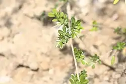Die Laubblätter sind in Blattstiel und Blattspreite gegliedert. Blattstiel und Blattspindel sind 0,7 bis 1,5, selten bis 2,5 Zentimeter lang, verdornend, bleibend oder abfallend. Die Blattspreite ist gefiedert oder manchmal gefingert. Die vier Fiederblättchen sind bei einer Länge von 1 bis 3,5 Zentimetern sowie einer Breite von 0,5 bis 1,5 Zentimetern verkehrt-eiförmig bis länglich verkehrt-eiförmig mit gerundetem oder stacheligem oberen Ende. Beide Seiten sind dunkel-grün. Die Nebenblätter verdornen.[2][3]