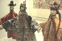 Im Aufbau ähneln die 45 bis 75 cm großen Figuren den unten beschriebenen Stockpuppen. Allerdings werden sie nicht von unten über Stäbe, sondern von oben über Fäden oder Drähte bewegt – weswegen die Marionetten auch Füße haben. Die Zahl der Fäden liegt üblicherweise bei 16 bis 24, manchmal sogar bei bis zu fünfzig. Dies ist ein Vielfaches des im Westen üblichen Wertes und erlaubt naturgemäß eine erheblich reichere Vielfalt und Natürlichkeit der Bewegungen. Das Steuerteil weist indes nicht die im Westen übliche Kreuzform auf, sondern ist schlicht rechteckig.