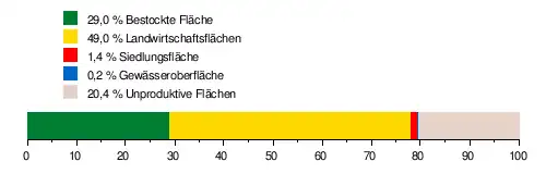 Das Einzugsgebiet besteht zu 29,0 % aus bestockter Fläche, 49,0 % aus Landwirtschaftsfläche, zu 1,4 % aus Siedlungsfläche, zu 0,2 % aus Gewässerfläche und zu 20,4 % aus unproduktiven Flächen.