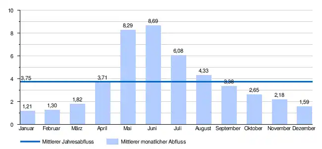 Der modellierte monatliche mittlere Abfluss (MQ) des Chirels in m³/s[2]