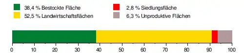 Es besteht zu 38,4 % aus bestockter Fläche, zu 52,5 % aus Landwirtschaftsfläche, zu 2,8 % aus Siedlungsfläche und zu 6,2 % aus unproduktiven Flächen.