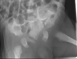 Radiologisch sind die Verkalkungen lediglich bis zu einem Alter von 3 bis 5 Jahren nachweisbar. Später stehen Wachstumsverzögerungen oder -störungen im Vordergrund.