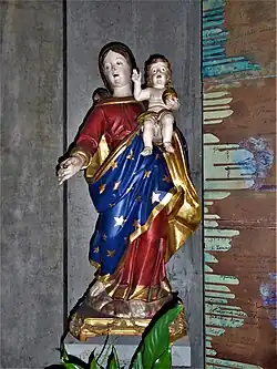Eines der frühesten Ausstattungsstücke ist eine barocke Madonnenskulptur, die aus dem schweizerischen Aargau stammt und um 1750 entstanden ist.[3] Sie hat ihren Platz links vom Altarbereich.