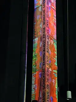 Die große Fensterrosette mit abstrakten Kompositionen in Rot und Blau wurde von Günter Peltzer geschaffen.[7]