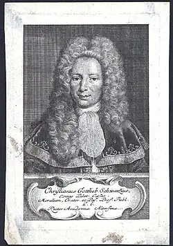 - Christian Gottlieb Schwarz war ein Mitglied der 1665 gegründeten wissenschaftlichen Gesellschaft Anthologia[2], der unter anderem Samuel von Pufendorf angehörte.