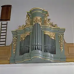 II/p | 27 | Zuschreibung; 1865 freies Pedal ergänzt; 1946–1948 Dispositionsänderungen; 1987 Rekonstruktion unter Beibehaltung des Pedals; Rokoko-Gehäuse; Denkmalorgel |
