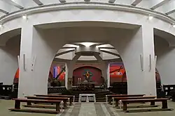 Der ursprüngliche, barocke Plan des Inneren wurde nach dem Krieg verworfen und durch eine sachlichere Gestaltung ersetzt. Das Zentrum des Innenraums wird von der Kuppel überwölbt. Daneben findet sich ein Umgang mit Kapellen, im Süden ist der Chor angeschlossen. Die Wände sind durchgehend weiß getüncht, nur die Steinelemente sind im unverputzten Zustand belassen.