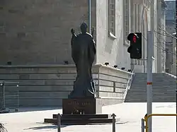 Die Kathedrale wurde in Anlehnung an den Klassizismus errichtet, aber mit vielen modernen und Art-déco-Elementen versehen. Das Äußere erhielt eine schmucklose Sandsteinverkleidung und nur am Dachansatz wurde ein verziertes Gesims mit einer Balustrade angebracht. Weitere Verzierungen gibt es an den Fenstern, wo um die Fenster Rahmen mit rechteckigen Feldern eingelassen wurden. Über dieser befindet sich die eingemeißelte Inschrift SOLI DEO HONOR ET GLORIA – Allein Gott sei Ehre und Ruhm.