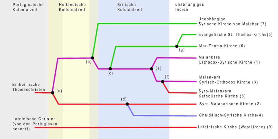 - (c) ab 1865 Beginn der Abtrennung der Mar-Thoma-Kirche