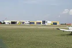 - ↑ Anm. Flughafenstraße 51, 8073 Feldkirchen bei Graz, ein Stück südlich von Abfertigungsgebäude und Luftfahrtmuseum