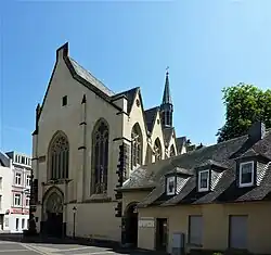 Die Kirche gilt als eine der wichtigsten und eindrucksvollsten rheinischen Minoritenkirchen und war über Jahrhunderte Begräbnisstätte der Stifterfamilie, des mittelrheinischen Adels und wohlhabender Bürger der Stadt, deren Wappen in den Kreuzgewölben angebracht sind. Möglicherweise sind Reste eines flachdachigen Vorgängerbaus integriert. Sie war berühmt wegen ihrer Wandmalereien, die zum Teil hinter Putz und Farbe wiedergefunden wurden und erhalten werden konnten.[1]