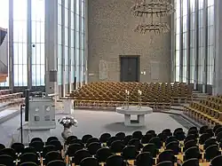 Auf Grund eines am 30. Januar 1952 ausgelobten Architektenwettbewerbs wurden die Verfasser des siegreichen Entwurfs, Helmut Hentrich und Hubert Petschnigg in Düsseldorf, mit der Ausführung beauftragt. Der Kirchenraum wurde in klarer, stumpfer Kreuzform erbaut. Der Abendmahlstisch kam in den Kreuzungspunkt und damit in den Mittelpunkt der Gemeinde. Der Boden wurde zur Mitte hin stufenförmig abgesenkt.