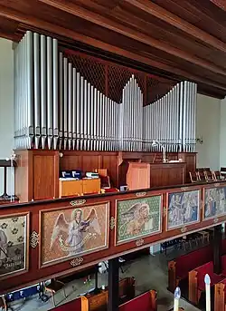 Die Front der hufeisenförmigen Empore schmücken 40 Wandbilder, die verschiedene Szenen aus dem Leben Jesu Christi und christliche Symbole zeigen. Die Gemälde stammen vom Professor für Wandmalerei Richard Holst[6]. Holst war seit 1909 Lehrender an einer Lehrwerkstätte für dekoratives Malen[7] und ab 1933 Parteimitglied der NSDAP. Holst äußerte sich später kritisch über den Krieg und wurde daraufhin 1943 aus der NSDAP ausgeschlossen[6]. Außerdem wurde ein Strafverfahren eingeleitet, er wurde vom Dienst an der Hochschule beurlaubt und schließlich im Dezember 1944 wegen „Wehrkraftzersetzung“ zu drei Jahren Gefängnis verurteilt.[6]