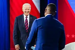 Joe Biden, der eigentlich eine Pressekonferenz zum Stand der durch die Coronakrise beeinträchtigten Wirtschaft geben wollte, sah sich durch die Erstürmung des Kapitols gezwungen, stattdessen dazu zu sprechen. Er forderte Trump dazu auf, Stellung zu beziehen und seine Anhänger zurückzurufen.[56]