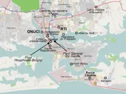 | Nacht vom 14. auf 15. März | Kämpfe | Yopougon in Abidjan | Die Residenz von Philippe Mangou, dem Oberbefehlshaber der Streitkräfte, wurde attackiert. | [8][6] ![]() |